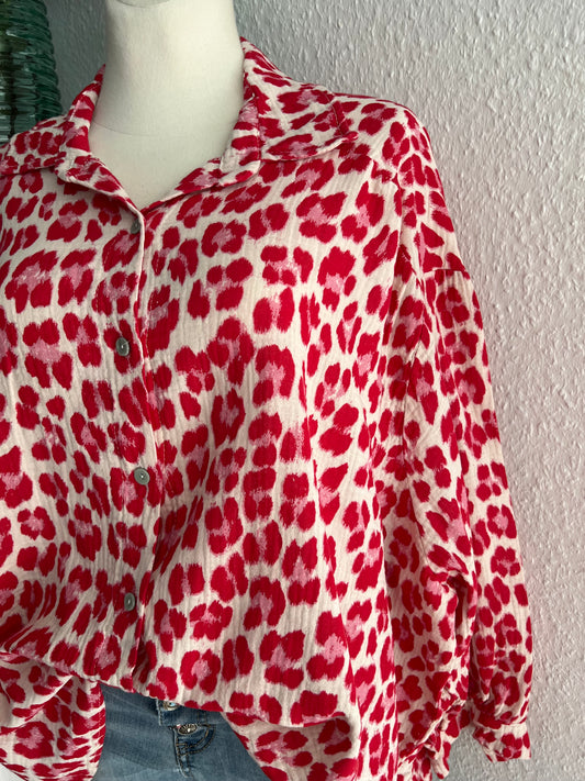 Musselin Bluse Leo rot rosa