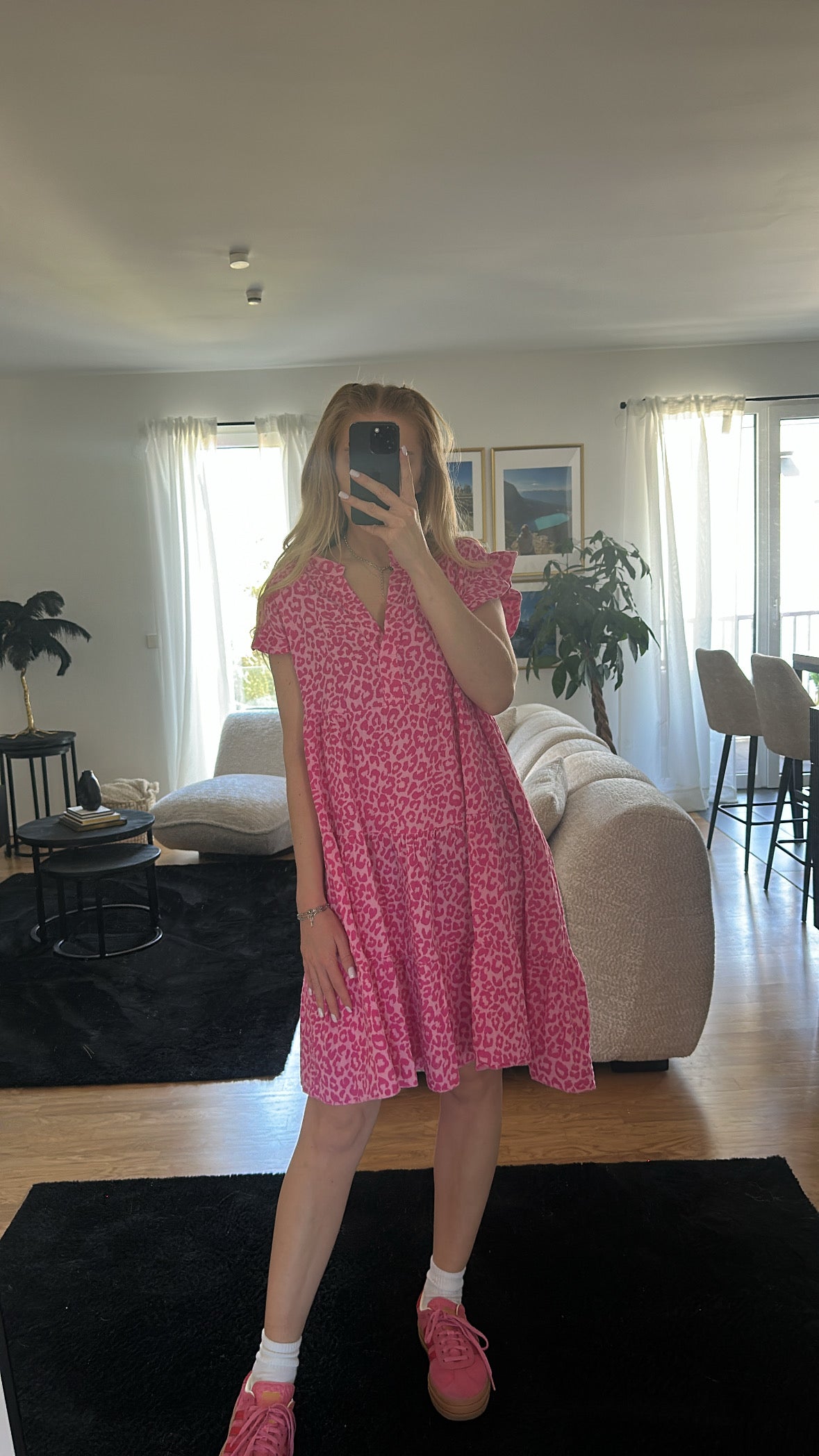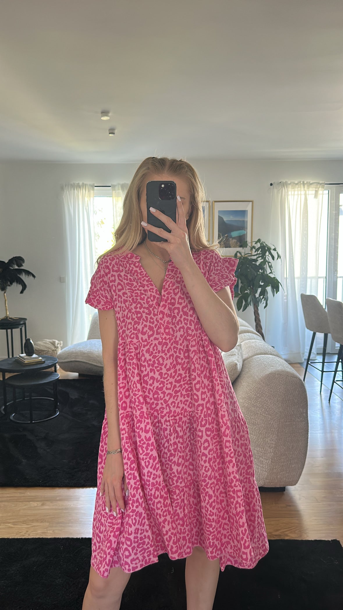 Rosa dunkelpink Musselin Kleid "Kurz - Leo"